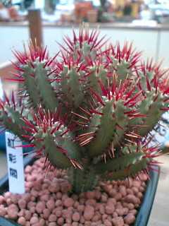 この形なんかいかにもサボテンらしいサボテン。赤い棘が毒々しい。