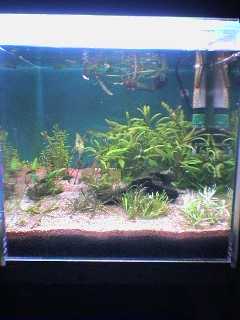 友人宅の水草水槽。いろいろ入って賑やかだねぇ。