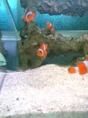 先日、友人宅に行きました。写メール撮りまくりです! ホームページに載せている友人宅の海水魚水槽に新たな仲間が増えていました。 カクレクマノミ!。クマノミにつつかれたらしく、隔離されていました(オーバーフロー水槽の別ケースに)。 う~ん、やっぱりカクレクマノミはかわいいですね。 「・・・ニモ・・・」